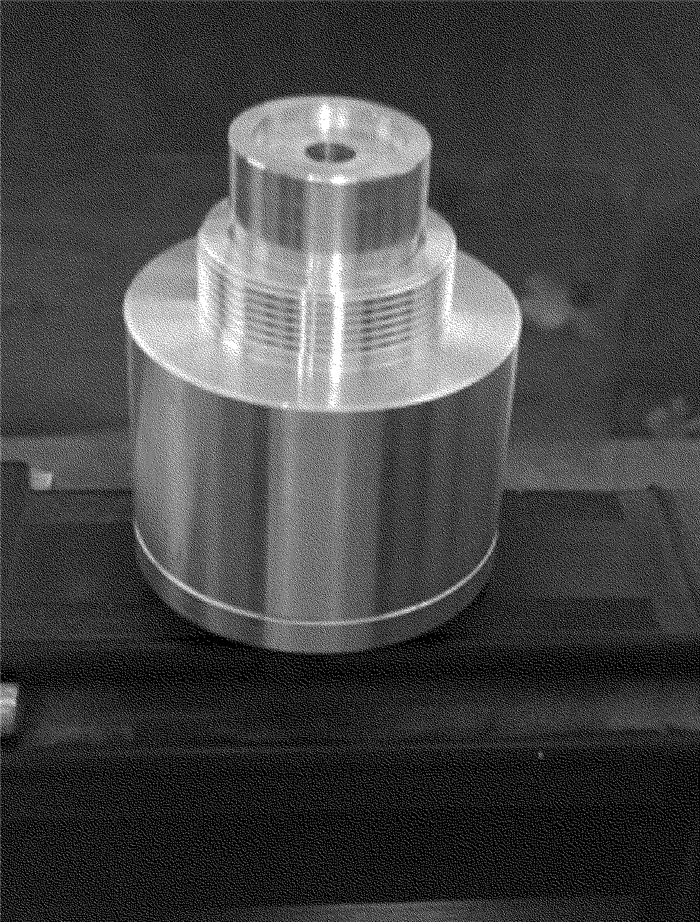 耦合裝置是實現(xiàn)激光與微水束耦合并傳輸?shù)年P(guān)鍵部件。耦合裝置主要由噴嘴體、進(jìn)水孔、O型圈、噴嘴支架等組成,如圖 2所示。本文中將噴嘴設(shè)計成圓柱形,目的是為了延長微水束的破碎長度。考慮到激光的能量密度比較大,且激光要在噴嘴內(nèi)部發(fā)生全反射,故噴嘴材料選用耐熱性比較好的銅。各參量具體數(shù)值為:噴嘴長度為10mm,噴嘴直徑為0.4mm,耦合間隙為0.4mm。噴嘴體頂部的定位圓柱體6與噴嘴支架4通過螺紋連接,高壓水從左右兩側(cè)的注水口注入耦合裝置,并進(jìn)入噴嘴體與光學(xué)玻璃之間形成的耦合間隙,然后通過噴嘴片上的噴嘴將耦合之后的光液高能束噴射出來。圖 3為耦合裝置的實物照片。