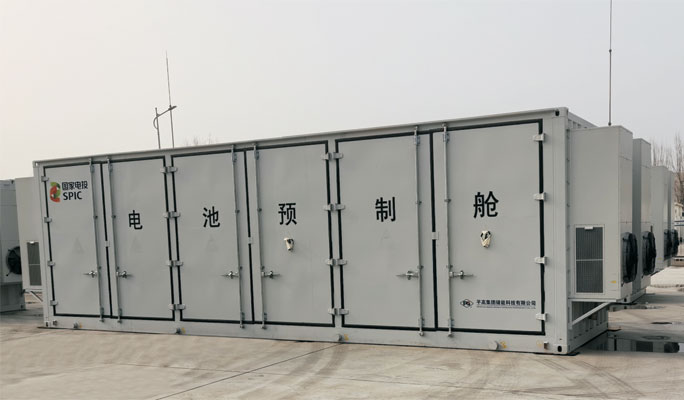 電池儲能預(yù)制艙包括:電池艙體,電氣艙、電池架消防通道。電池艙和電氣艙安裝消防和監(jiān)控系統(tǒng),電池艙頂部安裝多組散熱系統(tǒng),電氣艙設(shè)有逆電池儲能預(yù)制艙包括:電池艙體,電氣艙、電池架、變器。通過電池管理系統(tǒng)對電池組的管理,可實現(xiàn)作為消防通道。電池艙和電氣艙安裝消防和監(jiān)控系統(tǒng),電池備用電源而實現(xiàn)儲能電站的功能。電池儲能預(yù)制艙成套艙頂部安裝多組散熱系統(tǒng),電氣艙設(shè)有逆變器。通過電性強,系統(tǒng)簡單,體積小,移動性高,對環(huán)境適應(yīng)性強,運行安全池管理系統(tǒng)對電池組的管理,可實現(xiàn)作為備用電源而實可靠。